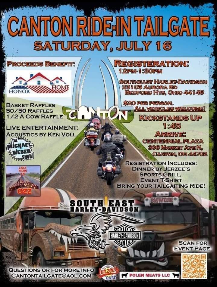 Join us for our 5th Annual Canton Ride-In Tailgate, and community event dedicated to supporting our U.S. Veterans! Hosted at the Hide-A-Way Buffalo Grill in Canton, Ohio. This family-friendly event will feature live music, raffles, Tailgate vehicles for tailgating, and much more. So come on out and do some tailgating with us. Enjoy the bands, have some good food and beverages, socialize and show your appreciation for those who served.