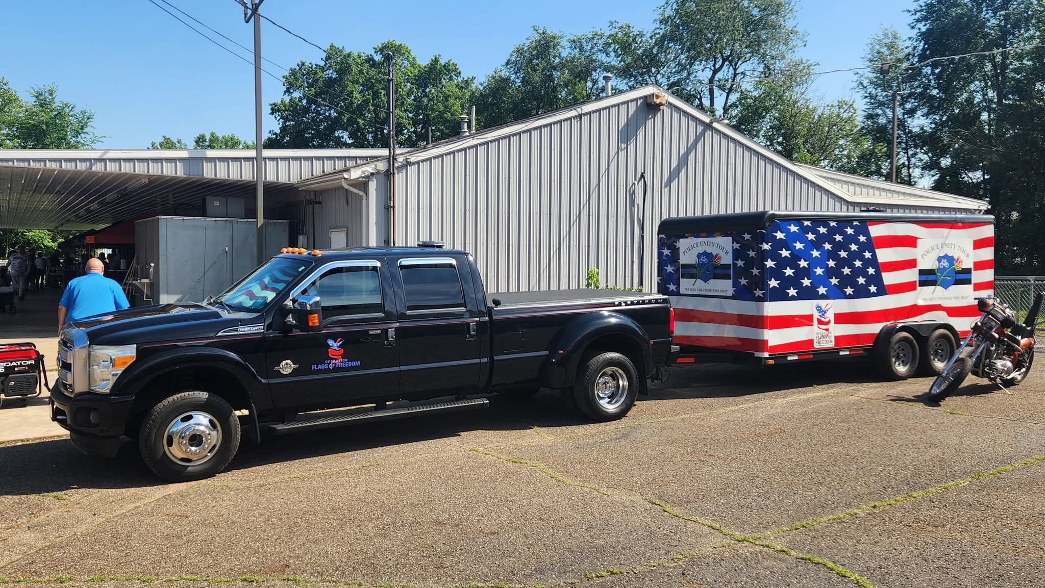 There will be no food trucks and we will not push the motorcycle run, but we will encourage a ride-in from wherever, and in any vehicle.