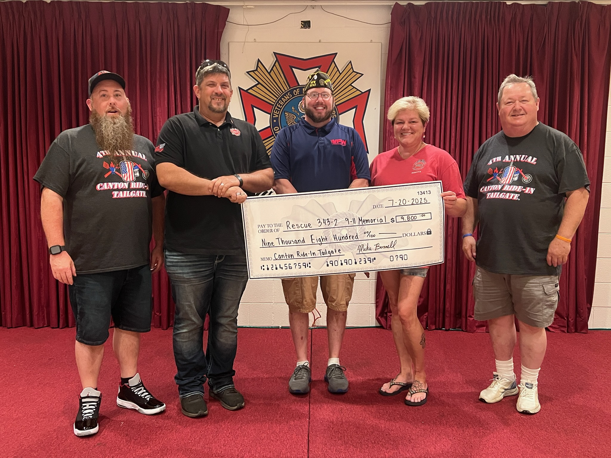 $9,800 was donated to Rescue 343-2 9-11 Memorial. They preserve the memory of the 343 firefighters and all first responder who made the ultimate sacrifice on September 11, 2001. They also support our US Veterans displayed on the Pentagon they have on their mobile memorial display.